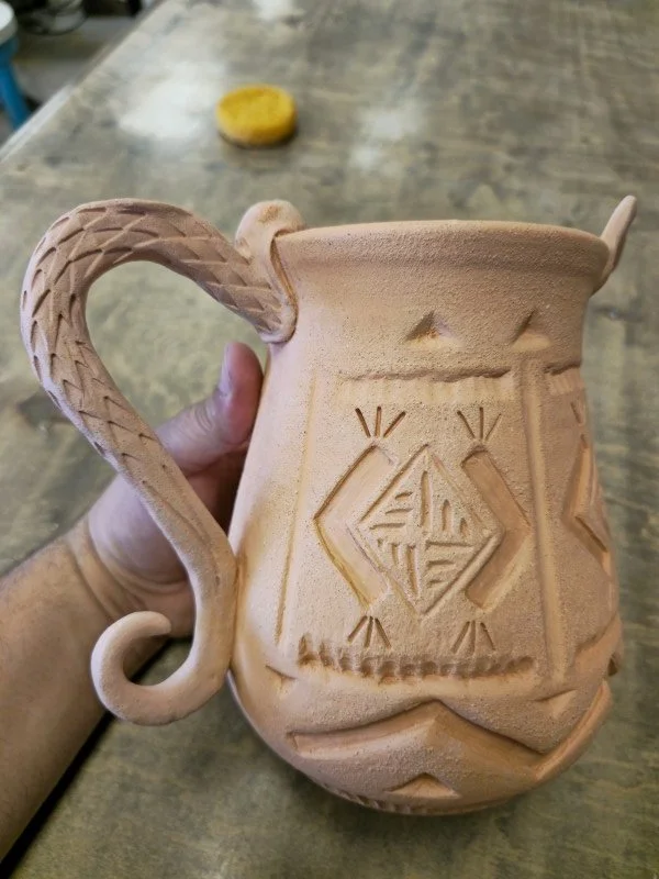 Prices can fluctuate also depending on design, but as a new business, my goal has been to have something for everyone. I can make a $20 cup, simple with no carving, minimal trimming/shape manipulation that is deemed more affordable compared to an +$80 cup of the same size, but has carvings, attachments, complex painting/glaze combinations, etc.
