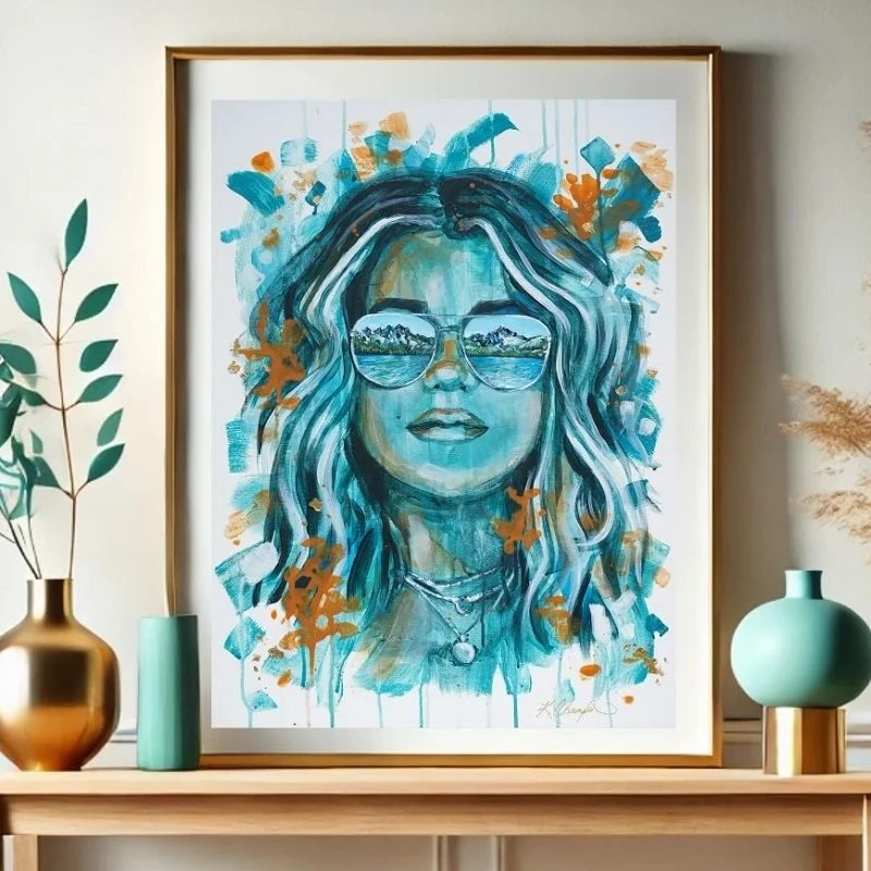 What sets my art apart is the way it blends travel, portraiture, and imagination into one expressive, vibrant style. My work celebrates many different destinations—from beaches to mountains to cities around the world—inviting viewers to experience the beauty and spirit of adventure in each piece. I love merging the realistic and the abstract, creating art that feels both grounded in place and alive with emotion and color.